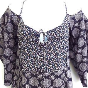 Lucy Love USA Tunic Mini Dress Cold Shoulder Butterfly Sleeves S