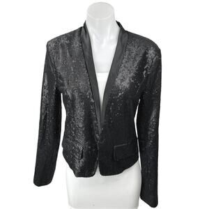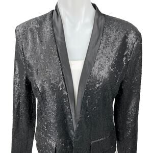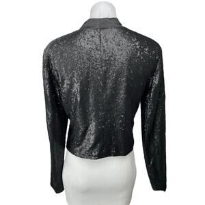 Lucy Paris Black Sequin Satin Open Front Long Sleeve Blazer Coat Jacket Size L