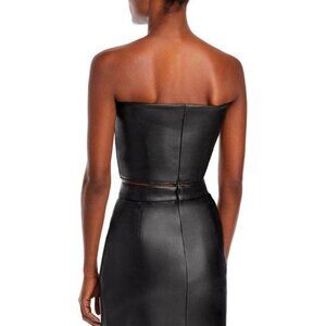Lucy Paris Cher Faux Leather Cropped Strapless Top in Fuschia