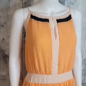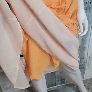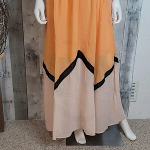 Lucy Paris Chiffon Maxi Peach Dress. Partially lined with adjustable straps that tie on the back