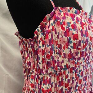 Lucy Paris Dress Floral Pleated Size Medium Red Purple Ruffles Adjustable Straps
