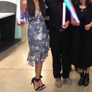 One shoulder, asymmetric floral print dress. The color is Blue Floral Combo. Size XS. Worn once. Super flattering and comfortable fit. Fabric is nice and silky. Adjustable strap.