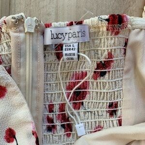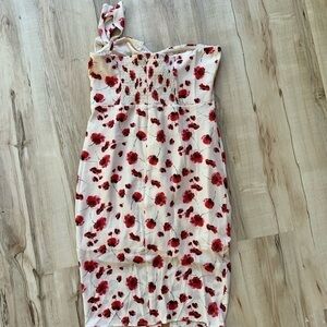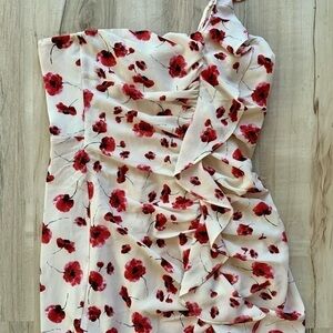 So cute!! One shoulder strap, ruffled, floral print dress stretch and zipper on back. Perfect condition!