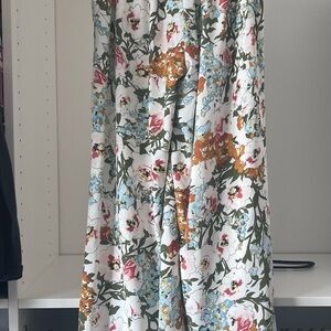 Easy to wear wide leg pants with vibrant floral design. Features a flowy silhouette. Ideal for versatile styling.