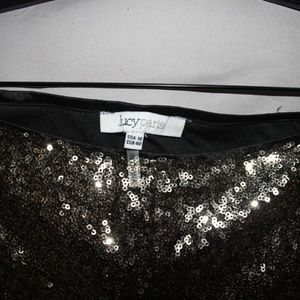 Lacy Paris gold sequin leggings/cigarette pants. Size M. Only flaws are a small amount of sequins missing on front left thigh (3rd photo) and small amount of sequins missing between legs (4th photo). Perfect for New Years Eve or a festive event.