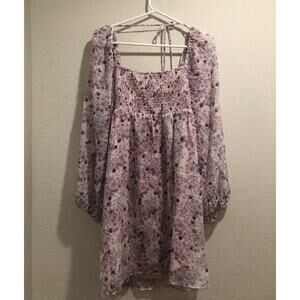 Lucy Paris NWT Pink Maeve Floral Long Sleeve Tie Back Mini Dress Size M