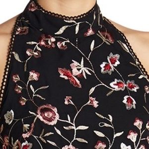 Beautiful Lucy Paris floral embroidery and an open back Nithia Halter Romper. The embroidery is very intricate and great quality!