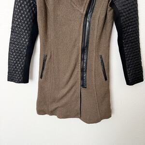 Lucy Paris Size Small S Olive Green Black Mixed Media Wool Faux Leather Jacket