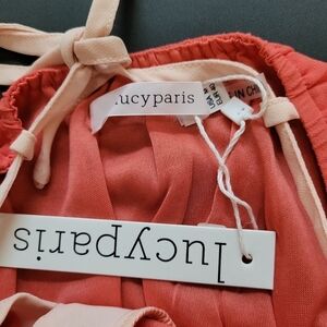 Lucy Paris coral-orange and peach flowy maxi dress