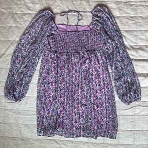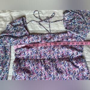 Lucy Paris Pink Purple Blue Floral Puff Sleeve Babydoll Mini Dress Cottagecore Fairycore Prairie Ethereal Feminine - US Medium EUR 40