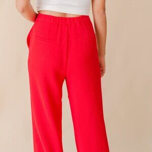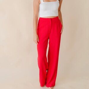 Vibrant red trousers. Wide-leg design. Perfect for stylish outings.