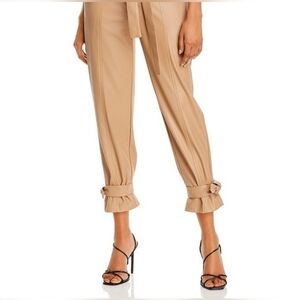 Lucy Paris S Faux Leather Tan Paperbag Pants Tie Waist Ankle Wrap Chic Neutral