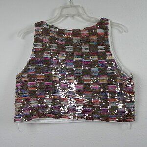 Lucy Paris Sequin Crop Top Women's Size XL Sleeveless Tank Colorful