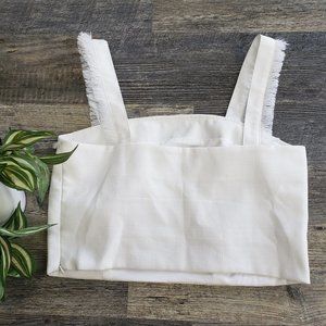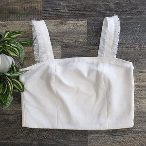 Lucy Paris Sleeveless Crop Top in White with Eyelash Trim Size M