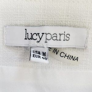 Cute and summery, this Lucy Paris crop top can be dressed up or down. - Eyelash trim on straps and across the top of the bodice - Concealed side zipper - Very good used condition - Fully lined - Shell 100% polyester; Lining 96% polyester, 4% spandex Approximate measurements: Pit to pit 17 " Shoulder to hem 17" Top only. Accessories not included. Smoke-free, dog-friendly home. T2