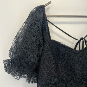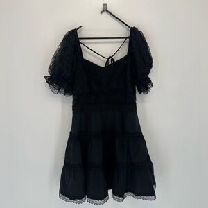 Lucy Paris Square Sweetheart Neck Lace Sheer Puff Sleeve Tiered Babydoll Dress