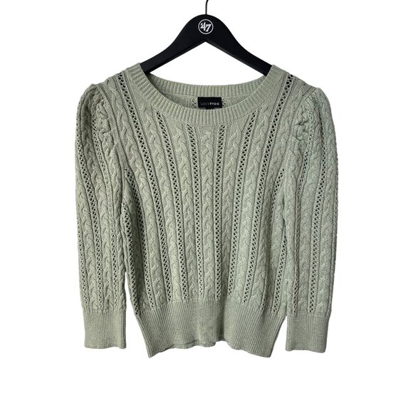 Lucy Paris Sweater Size Small Cable Knit Crewneck 3/4 Sleeve Sage Green Knitwear