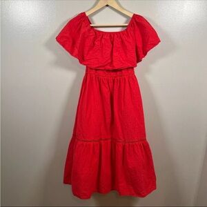 Lucy Paris Tiered Midi Dress Size S Red Off the Shoulder Peasant Boho Vacation