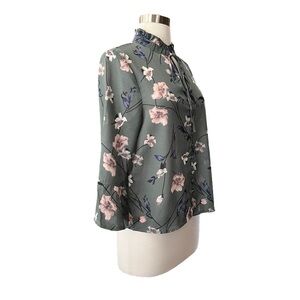 Lucy Paris Top Women's Size XS Green Floral Romantic Keyhole Tie Neck Ruffle
