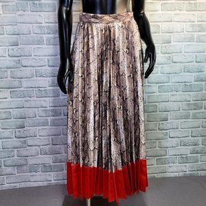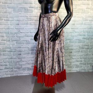 Lucy Paris Womens XS Python Accordion Pleated Midi Skirt Red Color-block Trim. Side zipper at waist