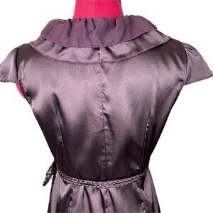 Lucy Paris Ruffled Wrap Satin Mini Dress Plum Purple S