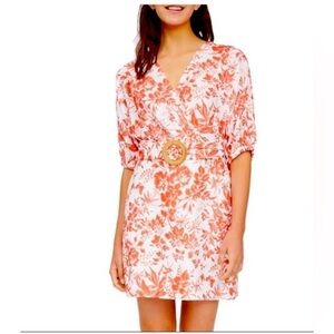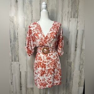 Lucy Paris floral print vneck orange/white mini dress nwt size XS