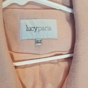 Light pink with single hidden zipper 50/50 wool & polyester 31" long from shoulder to hem never worn