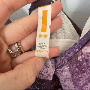 Lucy Purple and Black Space Rock Print Flowy Athletic Brami Top sz Medium