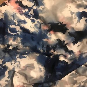 Multi colored beautiful racerback workout top! You can tie or untie the bottom for a relaxed or rooshing fit. This is like new! I’ve only worn it once and it’s in perfect condition-you will think it’s new!! Super soft and built in bra with slots to add inserts if you want!