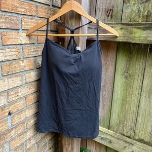 Stylish charcoal tank with thin straps. Perfect for casual wear.