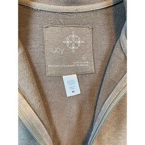 Some Spots on back Lucy Full Zip Sweater Women's XL Brown Floral Cotton Stretch Ribbed Long Sleeve