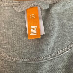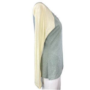 Lucy T-Shirt Women Sz S Gray Ivory Button V Neck Long Raglan Sleeve Jersey Knit