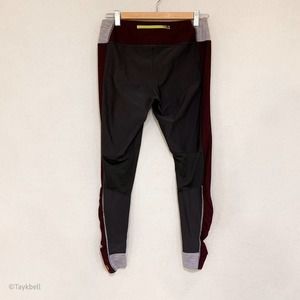 Lucy activewear pants. Thick elastic waistband to keep things in place. Sweat wicking. Super comfortable and slimming. Forms to curves perfectly. Great for all levels of working out and exercise. Dark purple/pink/raspberry color with gray paneling.