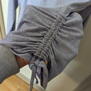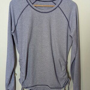 Excellent condition. Has ruching on the sides and thumbholes. Heathered purple color. Size tag has been removed, based on measurements its a size large. Pit to pit is 19”
