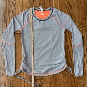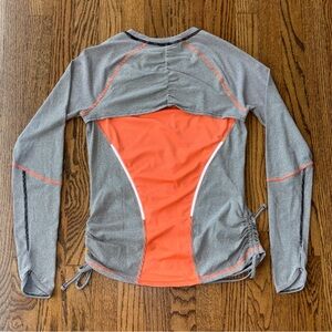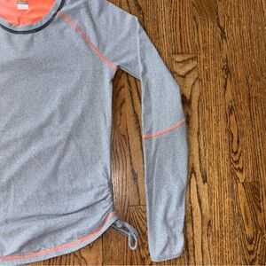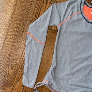 Lucy Tech Top Activewear Gray Orange Cinched Drawstring Bottom Shirt Women Small