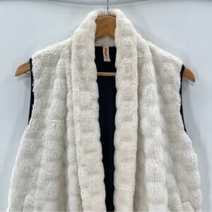 Lucy Brand Athleisure vest, size medium. Exceptionally soft white faux fur with a black fabric lining, waterfall style front with two side pockets. Excellent condition with no rips, tears, or stains. 28 inches long 20 inches across the chest.