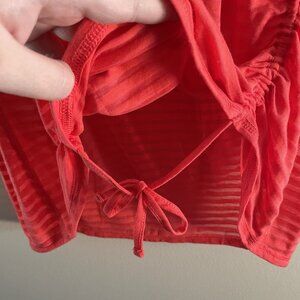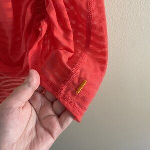 Lucy Women L Coral Burnout Striped Ruched Short Sleeve Worth The Weights Tee NWT