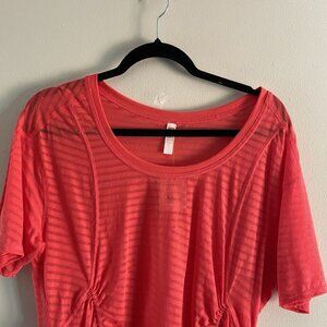 Lucy Women L Coral Burnout Striped Ruched Short Sleeve Worth The Weights Tee.