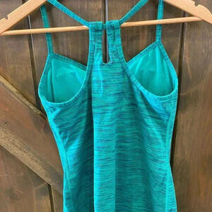 Lucy Womens Size Medium Racerback Athletic Workout Top Green Padding Liner. This top is pre-owned. Great condition. No flaws. Measurements: 16.5 inch chest 13.5 inch waist 24 inch length