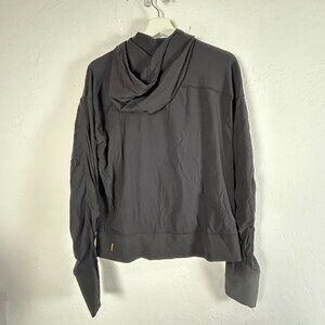 Lucy Womens Black Full-Zip Hooded Jacket Large Activewear Stretch Lightweight