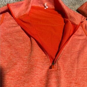 Stay stylish and comfortable with this vibrant coral quarter-zip top. Perfect for any casual outing.