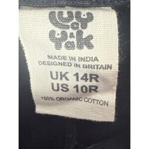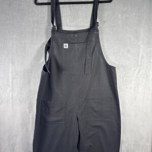 Stylish black jumpsuit by Lucy & Yak. Features adjustable straps and front pockets. Perfect for casual wear.