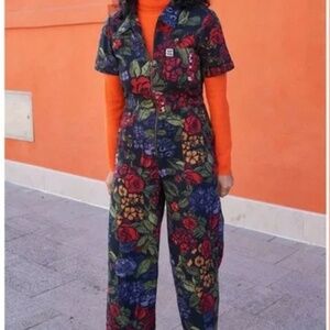 Lucy & Yak Ragan Organic Cotton Cropped Jumpsuit in Maria Print Such a beautiful and striking jumpsuit. Size 2 PETITE- jumpsuit is meant to be cropped, this will be slightly more cropped depending on height. All details are listing in pictures I believe this is NWOT as it still has the dissolve label attached and it feels new. In excellent condition. Pit to pit: 17” Waist: 12.5” Inseam: 21” Total length: 48” Smoke free, pet friendly home