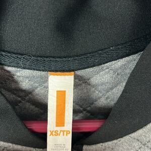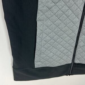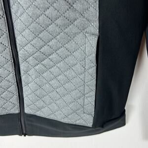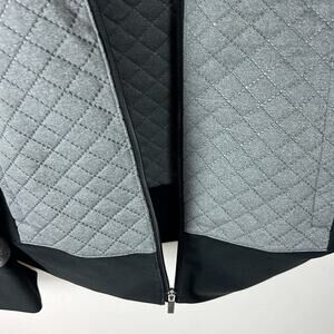Gently Used Lucy Zip Up Light Jacket. This is a women's XS. Gray with black accents on the sides and sleeves. The gray has a diamond quilt pattern to it. Zipper side pockets. Kind of a bomber jacket look to it. 88% polyester, 12% lycra spandex. Great for fall!