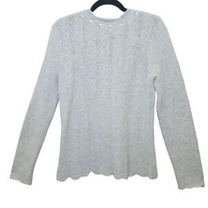 Lucy and Laurel Sweater Womens Large Light Grey, V-Neck, Scalloped Hem, Long Sleeve