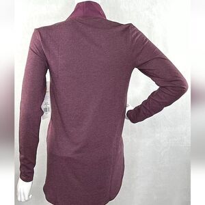 tags purple eggplant barre cardigan leggings working layer hoka match mix small large Stretch Knit Performance Work Out Run Walk Fitness Tee Shirt Athletic, sporty, retrosport, gym, workout, technical, performance, gorpcore, activewear, utility, practical, cargo, organic, natural, granola girl, hiking, camping, outdoor, running, jogging, walking, cycling, bicycling, peloton, weight lifting, basketball, track, field, practice, yoga, trail, pilates