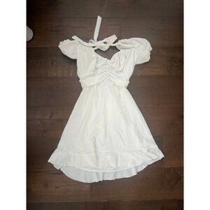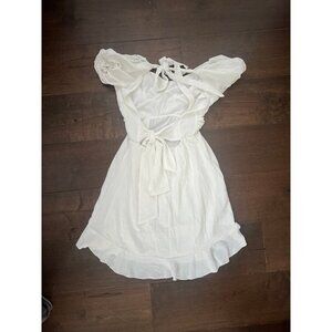 Size small, worn once for an event, extremely cute dress! No flaws, has ties on back, perfect little white dress