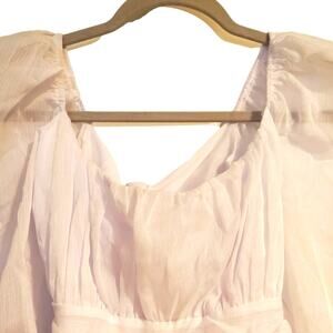 Preowned, in excellent condition. Very cute. Lightweight, lined up except seethrough balloon sleeves and 2" of bottom edge of dress. Please, check measurements to make sure the item fits you.