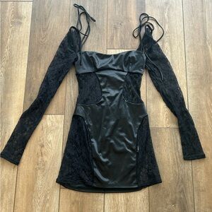Lucy in the Sky Black Lace Satin Bodycon Sexy Mini Dress Small