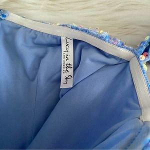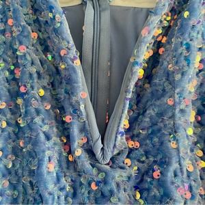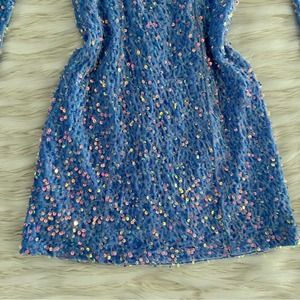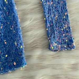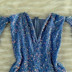 Lucy in the Sky Blue Sequins Velvet Off Shoulder Long Sleeve Bodycon Mini Dress